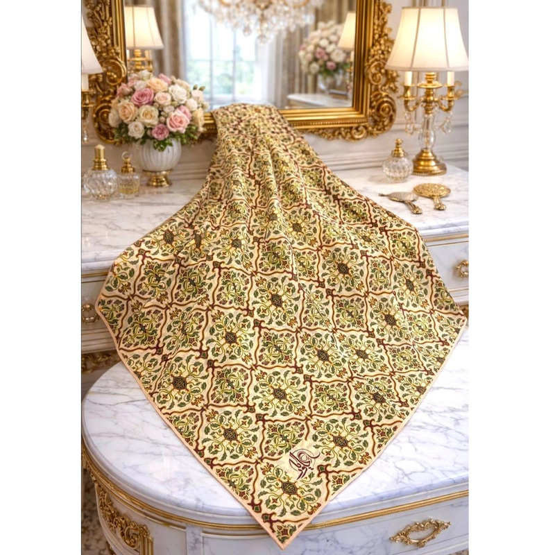 طراحی ظریف و بی نقص ، رنگ های اسلیمی و سنتی ، جنس نخی درجه یک و اعلاء ، این روسریو همه چی تموم کرده